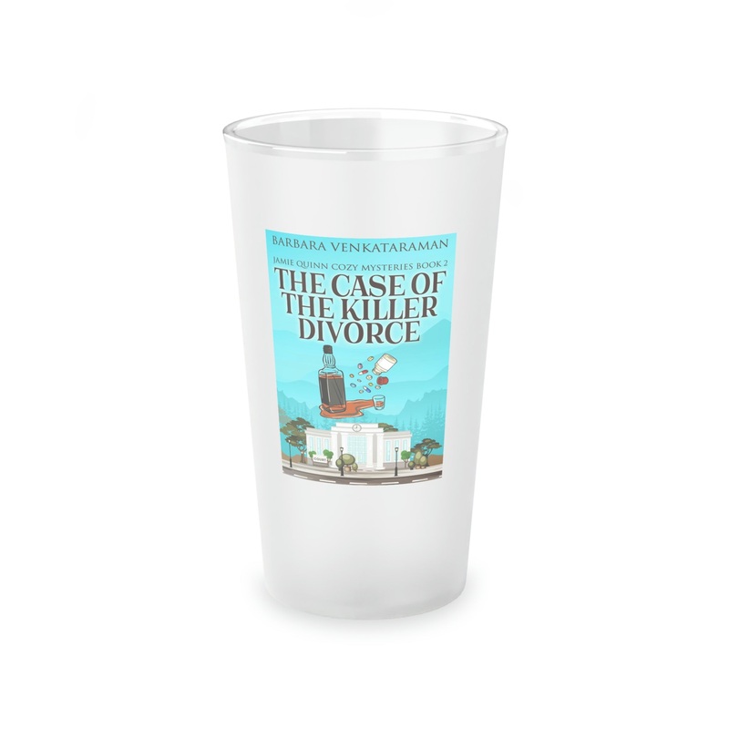 This frosted matte finish pint glass is versatile and dishwasher-safe. The cover art in this pint glass is from Barbara Venkataraman's book, The Case Of The Killer Divorce.