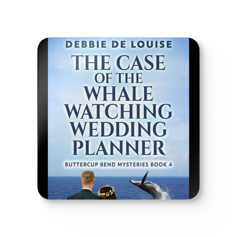 These coasters are made with a high-gloss top and feature a cork back to prevent sliding, and each order comes with a set of four coasters. The cover art in these coasters is from Debbie De Louise's book, The Case of the Whale Watching Wedding Planner.
