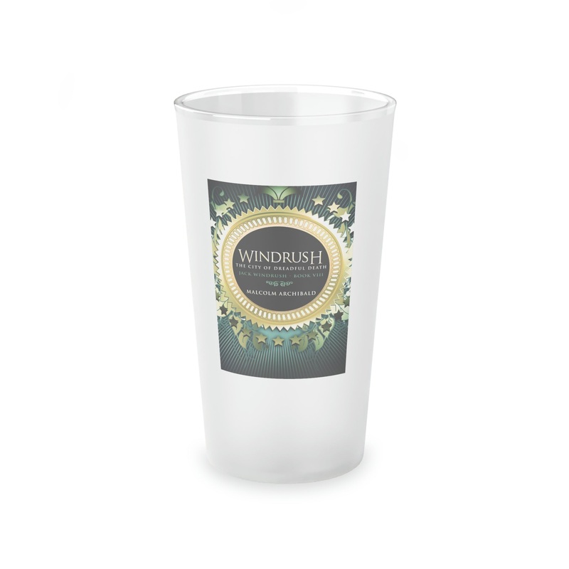 This frosted matte finish pint glass is versatile and dishwasher-safe. The cover art in this pint glass is from Malcolm Archibald's book, The City Of Dreadful Death.
