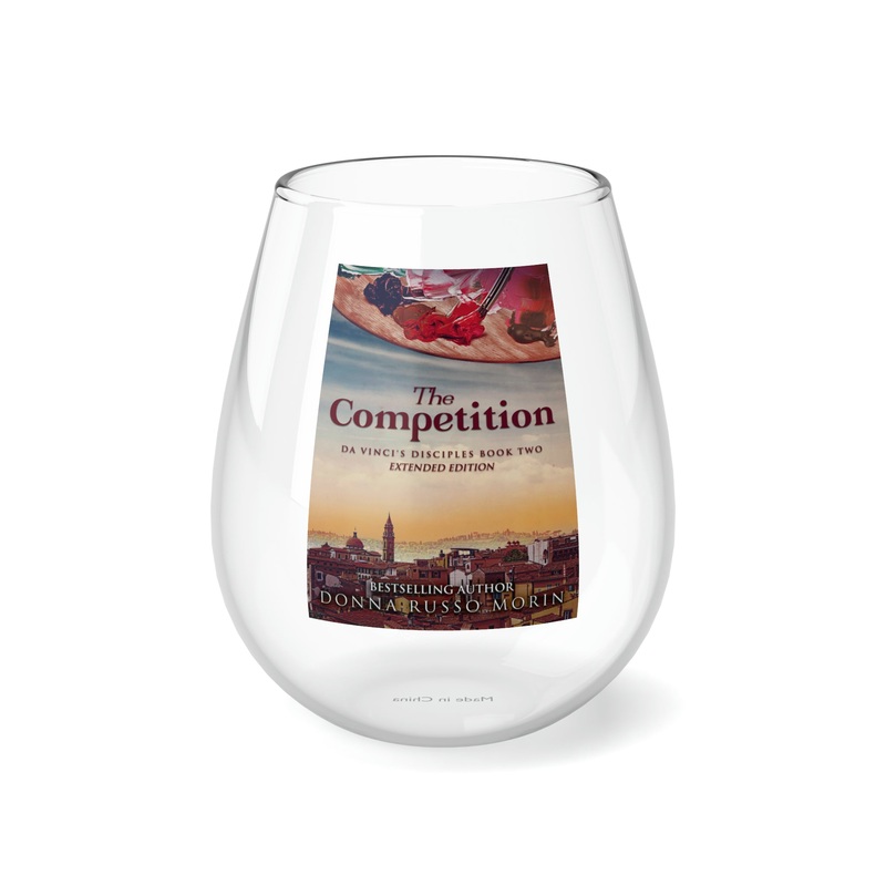 Whether it’s weddings, parties, or beautiful evenings with friends and family, this stemless glass wine fits right in. With its sleek design, each glass holds 11.75oz of your favorite wine. The cover art in this wine glass is from Donna Russo Morin’s book, The Competition.