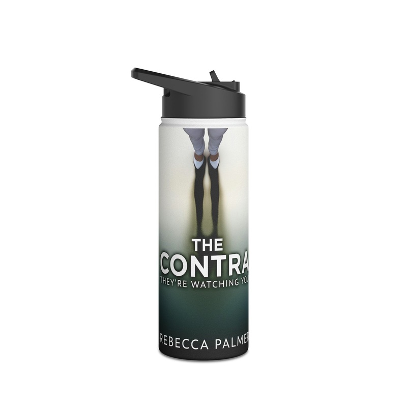 Quench your thirst in style with this 18oz stainless steel water bottle featuring a double-wall stainless steel build that keeps your drinks frosty for 24h and soothingly hot for 12h. This BPA-free, steel water bottle comes with a twist-on lid for easy sipping, making it excellent for daily use at work, at college, in the car, and beyond. The cover art in this water bottle is from Rebecca Palmer’s book, The Contra.
