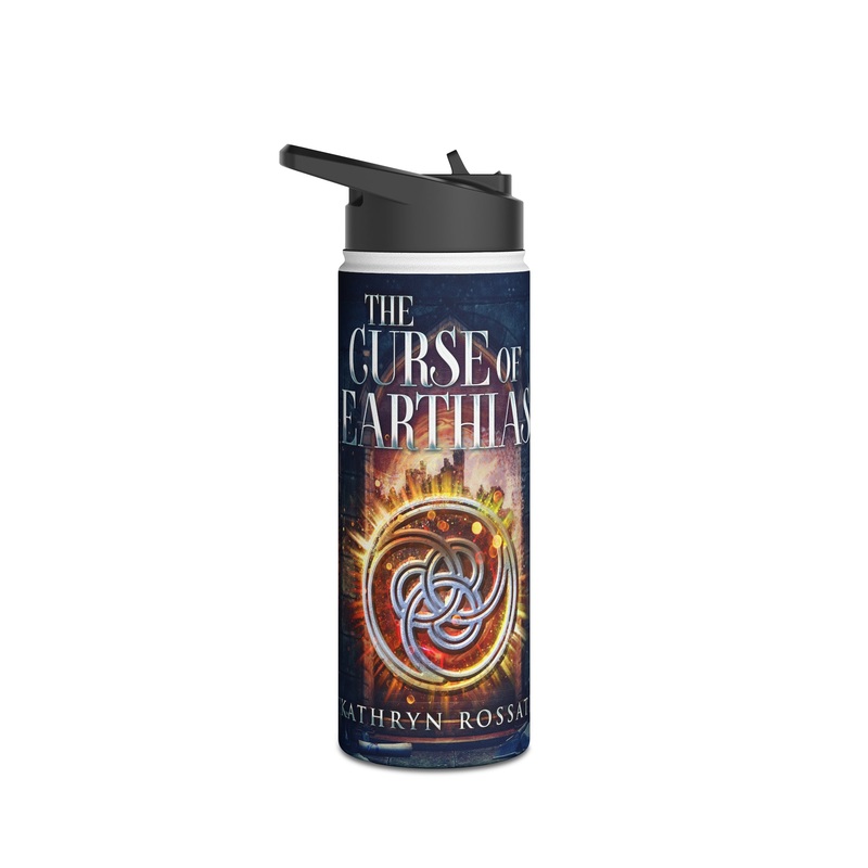 Quench your thirst in style with this 18oz stainless steel water bottle featuring a double-wall stainless steel build that keeps your drinks frosty for 24h and soothingly hot for 12h. This BPA-free, steel water bottle comes with a twist-on lid for easy sipping, making it excellent for daily use at work, at college, in the car, and beyond. The cover art in this water bottle is from Kathryn Rossati’s book, The Curse Of Earthias.