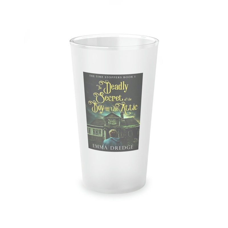 This frosted matte finish pint glass is versatile and dishwasher-safe. The cover art in this pint glass is from Emma Dredge's book, The Deadly Secret of the Boy in the Attic.