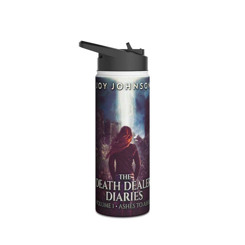 Quench your thirst in style with this 18oz stainless steel water bottle featuring a double-wall stainless steel build that keeps your drinks frosty for 24h and soothingly hot for 12h. This BPA-free, steel water bottle comes with a twist-on lid for easy sipping, making it excellent for daily use at work, at college, in the car, and beyond. The cover art in this water bottle is from Joy Johnson’s book, The Death Dealer Diaries.