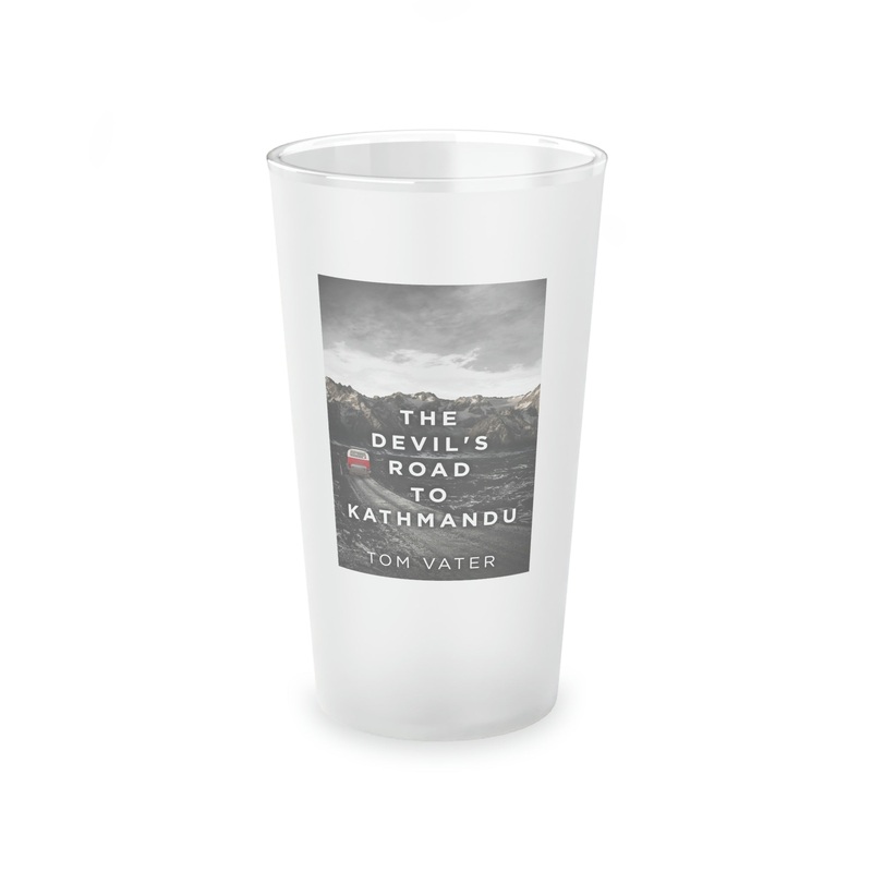 This frosted matte finish pint glass is versatile and dishwasher-safe. The cover art in this pint glass is from Tom Vater's book, The Devil's Road To Kathmandu.