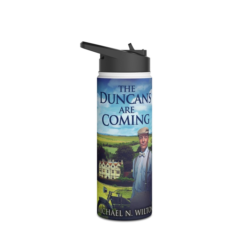 Quench your thirst in style with this 18oz stainless steel water bottle featuring a double-wall stainless steel build that keeps your drinks frosty for 24h and soothingly hot for 12h. This BPA-free, steel water bottle comes with a twist-on lid for easy sipping, making it excellent for daily use at work, at college, in the car, and beyond. The cover art in this water bottle is from Michael N. Wilton’s book, The Duncans Are Coming.