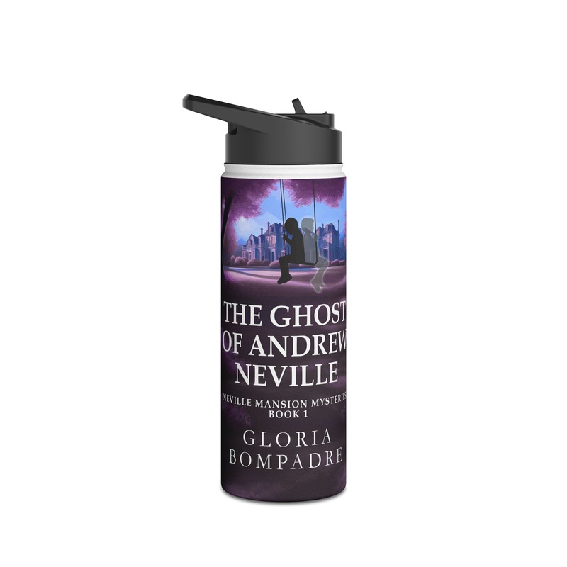 Quench your thirst in style with this 18oz stainless steel water bottle featuring a double-wall stainless steel build that keeps your drinks frosty for 24h and soothingly hot for 12h. This BPA-free, steel water bottle comes with a twist-on lid for easy sipping, making it excellent for daily use at work, at college, in the car, and beyond. The cover art in this water bottle is from Gloria Bompadre’s book, The Ghost of Andrew Neville (Neville Mansion Mysteries Book 1).