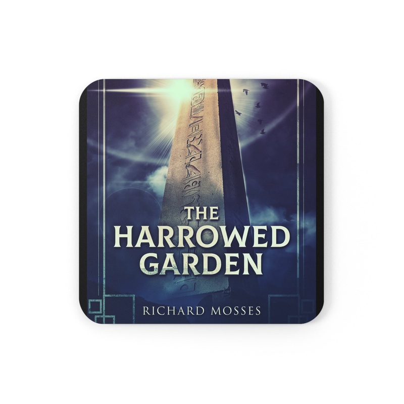 These coasters are made with a high-gloss top and feature a cork back to prevent sliding, and each order comes with a set of four coasters. The cover art in these coasters is from Richard Mosses’s book, The Harrowed Garden.