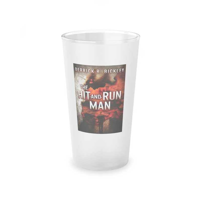 This frosted matte finish pint glass is versatile and dishwasher-safe. The cover art in this pint glass is from Derrick Bickley's book, The Hit-and-Run Man.