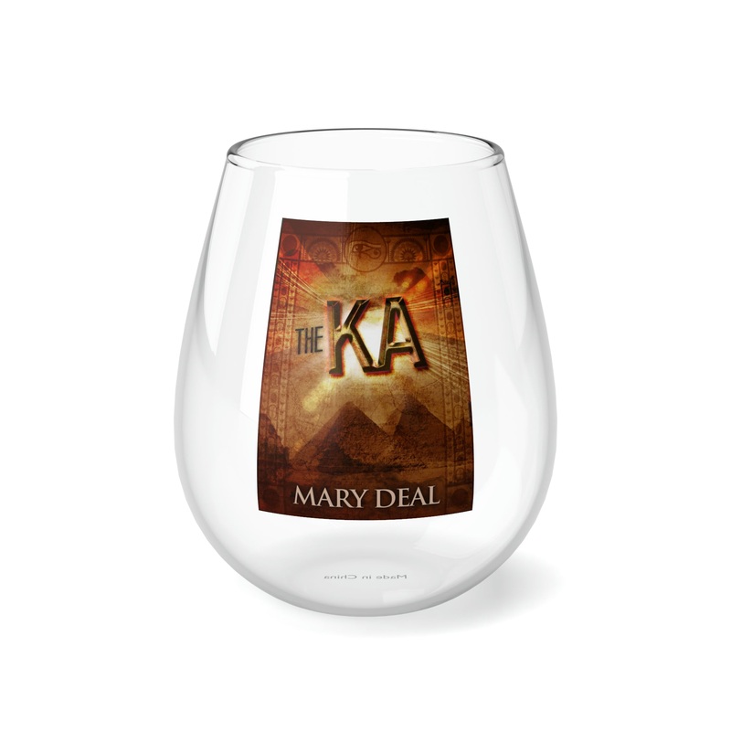 Whether it’s weddings, parties, or beautiful evenings with friends and family, this stemless glass wine fits right in. With its sleek design, each glass holds 11.75oz of your favorite wine. The cover art in this wine glass is from Mary Deal’s book, The Ka.
