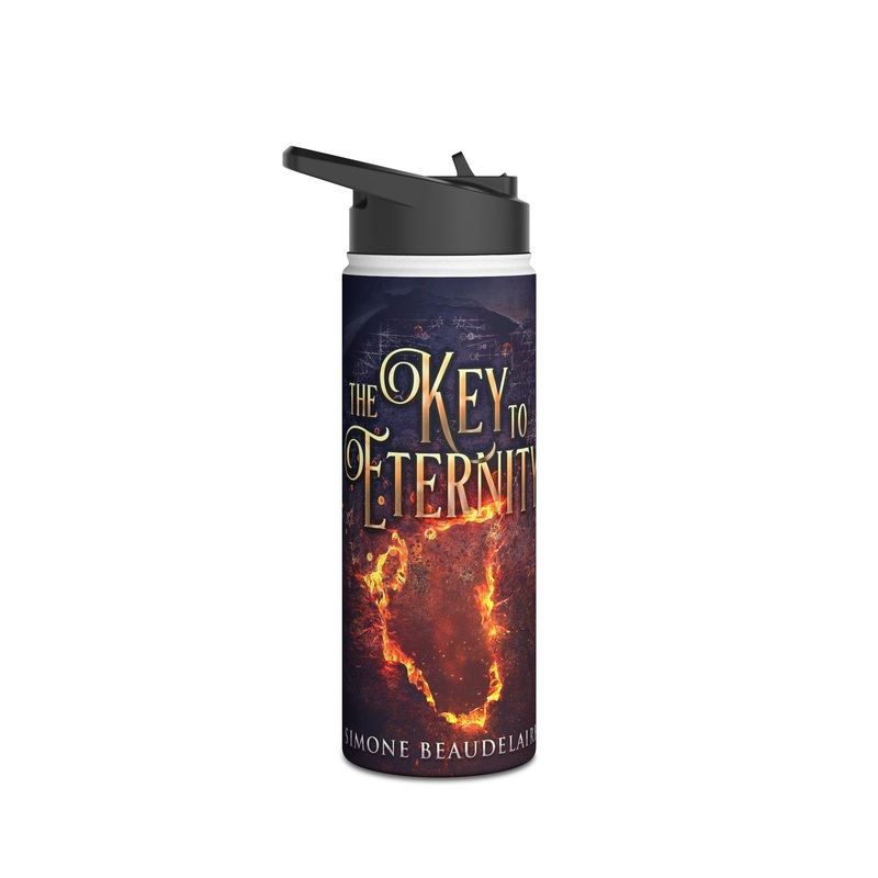 Quench your thirst in style with this 18oz stainless steel water bottle featuring a double-wall stainless steel build that keeps your drinks frosty for 24h and soothingly hot for 12h. This BPA-free, steel water bottle comes with a twist-on lid for easy sipping, making it excellent for daily use at work, at college, in the car, and beyond. The cover art in this water bottle is from Simone Beaudelaire’s book, The Key To Eternity.