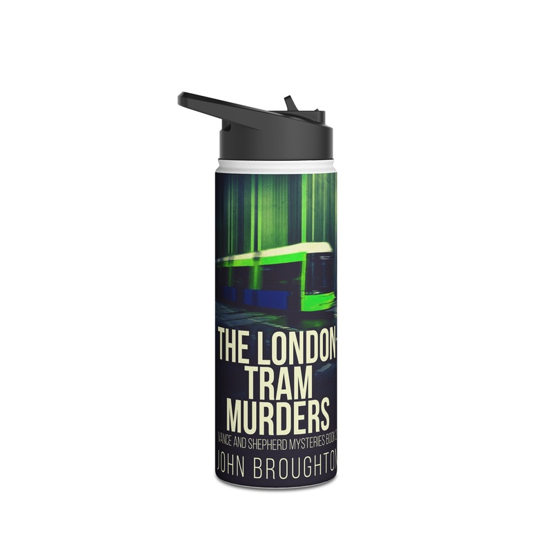 Quench your thirst in style with this 18oz stainless steel water bottle featuring a double-wall stainless steel build that keeps your drinks frosty for 24h and soothingly hot for 12h. This BPA-free, steel water bottle comes with a twist-on lid for easy sipping, making it excellent for daily use at work, at college, in the car, and beyond. The cover art in this water bottle is from John Broughton’s book, The London Tram Murders.