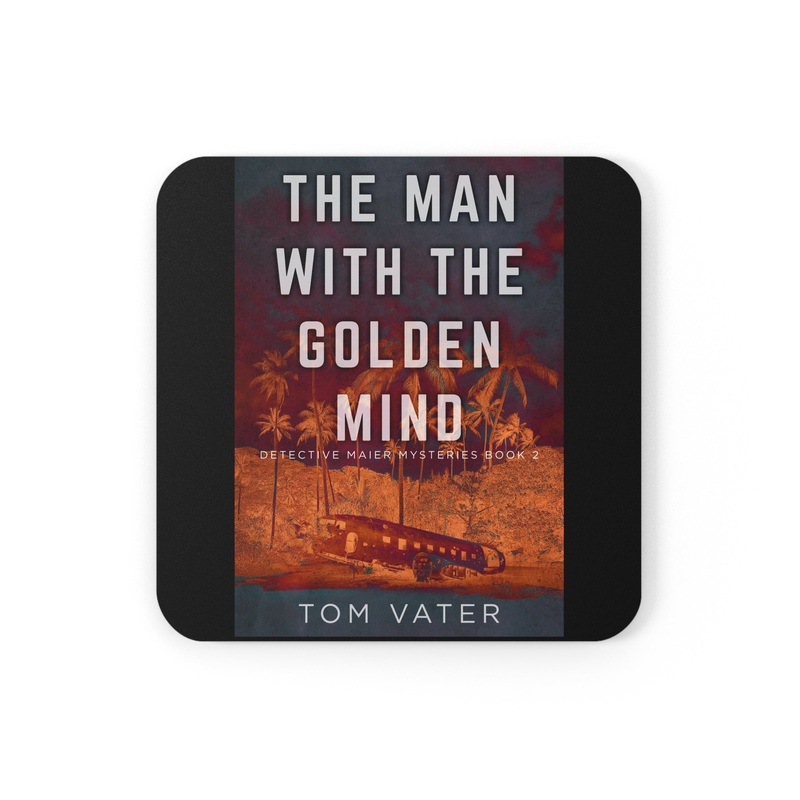 These coasters are made with a high-gloss top and feature a cork back to prevent sliding, and each order comes with a set of four coasters. The cover art in these coasters is from Tom Vater’s book, The Man With The Golden Mind.