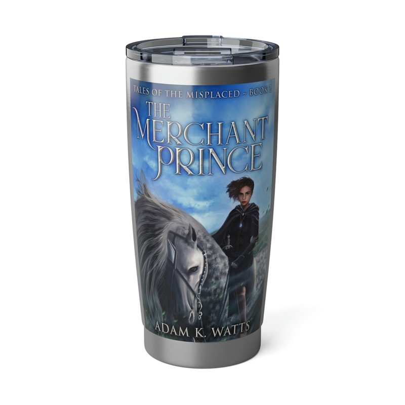 Minimize your plastic footprint with style. This tumbler fits perfectly into car cup holders, and the rubber gasket makes it spill-resistant on bumpier roads. The double-wall insulation makes sure drinks stay at the right temperature until the next pit stop. The cover art in this 20 oz tumbler is from Adam K. Watts’s book, The Merchant Prince.