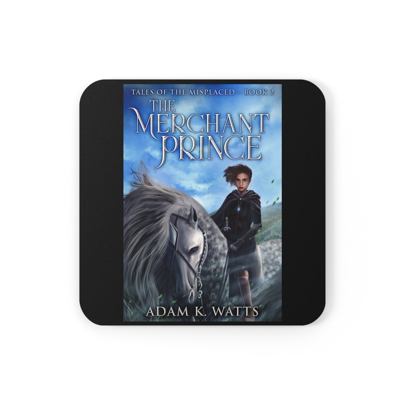 These coasters are made with a high-gloss top and feature a cork back to prevent sliding, and each order comes with a set of four coasters. The cover art in these coasters is from Adam K. Watts’s book, The Merchant Prince.