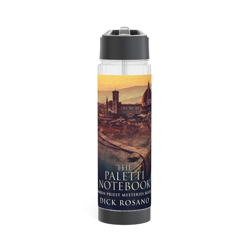 Add flavor and personality to your water with this infuser bottle. Twist the base off to access the infuser and add fruits, tea leaves, or anything you desire to enhance the flavor of your water. On the top, you’ll find a twist-on lid with a flip-top drinking sprout for a seamless drinking experience. This infuser is excellent for using at home, during outdoor excursions, or at the gym as a sports bottle. The cover art in this infuser water bottle is from Dick Rosano’s book, The Paletti Notebook.
