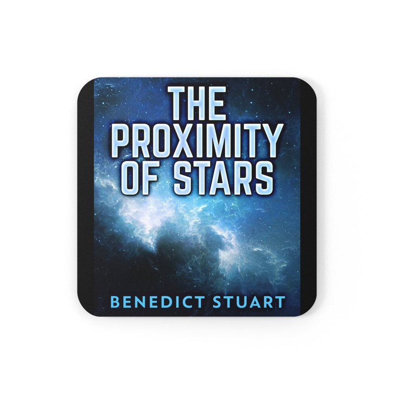 These coasters are made with a high-gloss top and feature a cork back to prevent sliding, and each order comes with a set of four coasters. The cover art in these coasters is from Benedict Stuart's book, The Proximity Of Stars.