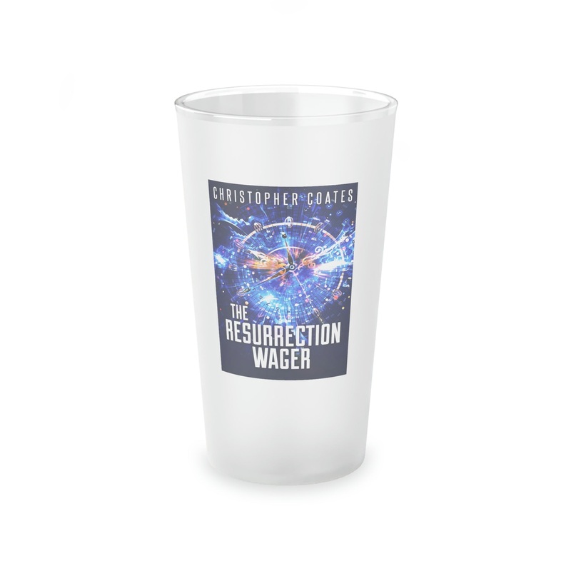 This frosted matte finish pint glass is versatile and dishwasher-safe. The cover art in this pint glass is from Christopher Coates's book, The Resurrection Wager.