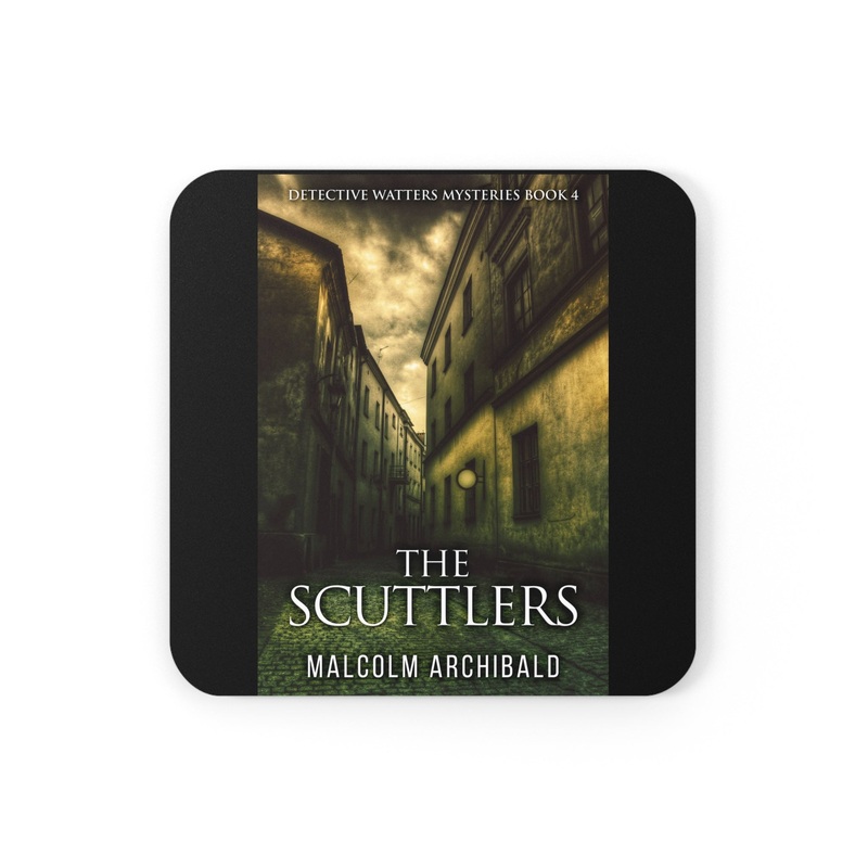 These coasters are made with a high-gloss top and feature a cork back to prevent sliding, and each order comes with a set of four coasters. The cover art in these coasters is from Malcolm Archibald's book, The Scuttlers.