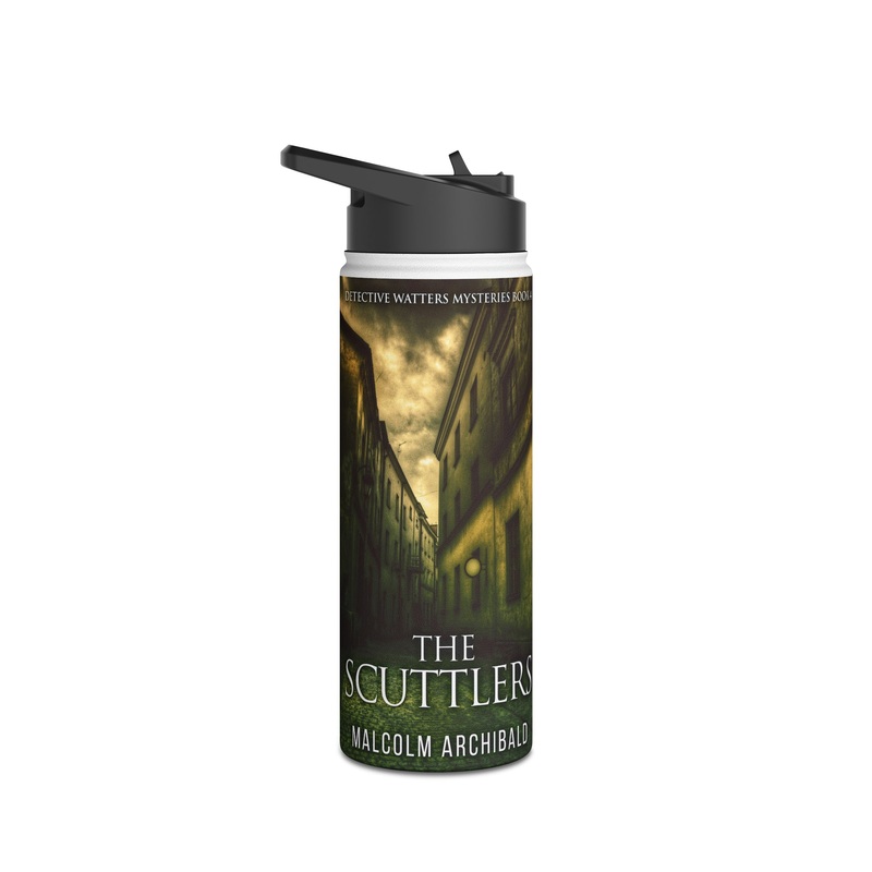 Quench your thirst in style with this 18oz stainless steel water bottle featuring a double-wall stainless steel build that keeps your drinks frosty for 24h and soothingly hot for 12h. This BPA-free, steel water bottle comes with a twist-on lid for easy sipping, making it excellent for daily use at work, at college, in the car, and beyond. The cover art in this water bottle is from Malcolm Archibald’s book, The Scuttlers.