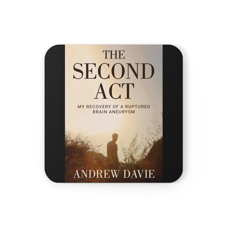 These coasters are made with a high-gloss top and feature a cork back to prevent sliding, and each order comes with a set of four coasters. The cover art in these coasters is from Andrew Davie’s book, The Second Act.