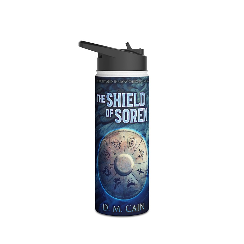 Quench your thirst in style with this 18oz stainless steel water bottle featuring a double-wall stainless steel build that keeps your drinks frosty for 24h and soothingly hot for 12h. This BPA-free, steel water bottle comes with a twist-on lid for easy sipping, making it excellent for daily use at work, at college, in the car, and beyond. The cover art in this water bottle is from D.M. Cain’s book, The Shield of Soren.