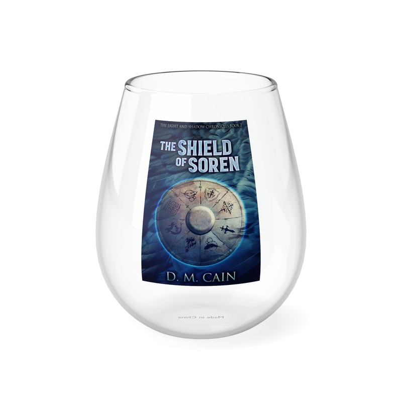 Whether it’s weddings, parties, or beautiful evenings with friends and family, this stemless glass wine fits right in. With its sleek design, each glass holds 11.75oz of your favorite wine. The cover art in this wine glass is from D.M. Cain’s book, The Shield of Soren.