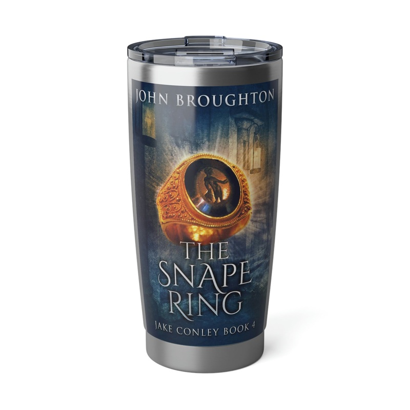 Minimize your plastic footprint with style. This tumbler fits perfectly into car cup holders, and the rubber gasket makes it spill-resistant on bumpier roads. The double-wall insulation makes sure drinks stay at the right temperature until the next pit stop. The cover art in this 20 oz tumbler is from John Broughton’s book, The Snape Ring.