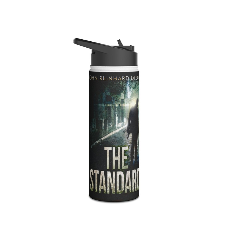 Quench your thirst in style with this 18oz stainless steel water bottle featuring a double-wall stainless steel build that keeps your drinks frosty for 24h and soothingly hot for 12h. This BPA-free, steel water bottle comes with a twist-on lid for easy sipping, making it excellent for daily use at work, at college, in the car, and beyond. The cover art in this water bottle is from John Reinhard Dizon’s book, The Standard.