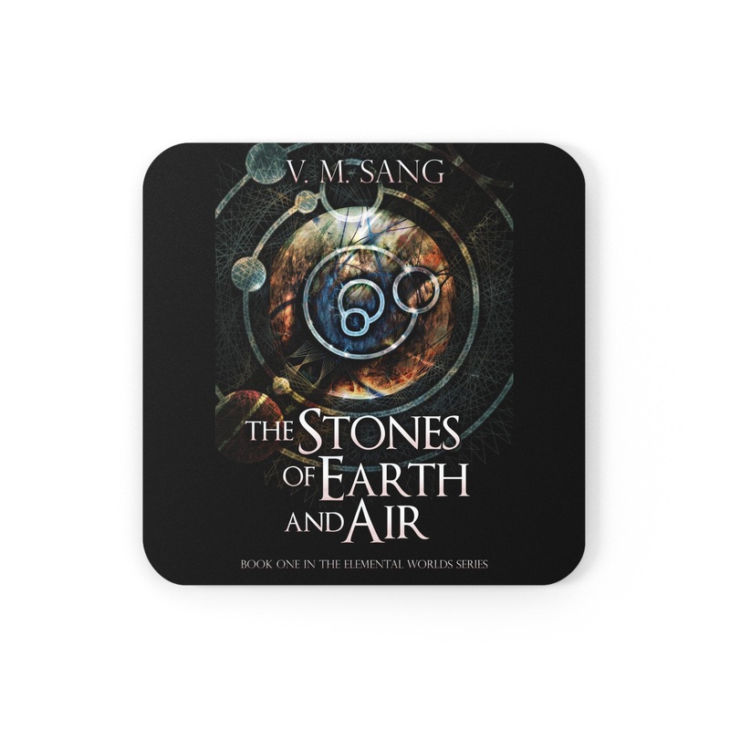 These coasters are made with a high-gloss top and feature a cork back to prevent sliding, and each order comes with a set of four coasters. The cover art in these coasters is from V.M. Sang's book, The Stones of Earth and Air.