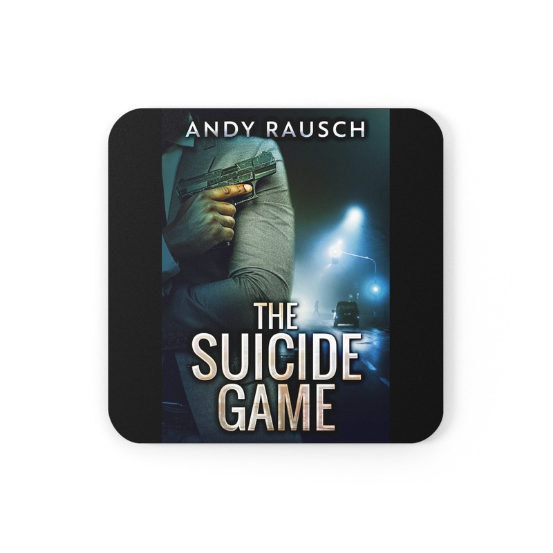 These coasters are made with a high-gloss top and feature a cork back to prevent sliding, and each order comes with a set of four coasters. The cover art in these coasters is from Andy Rausch’s book, The Suicide Game.