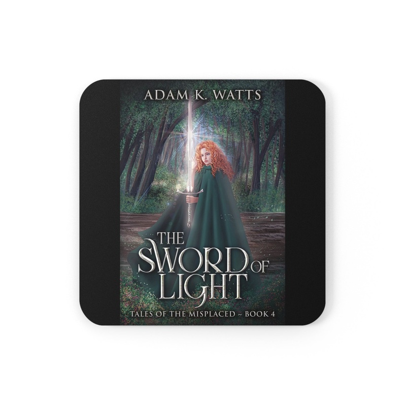 These coasters are made with a high-gloss top and feature a cork back to prevent sliding, and each order comes with a set of four coasters. The cover art in these coasters is from Adam K. Watts's book, The Sword of Light.