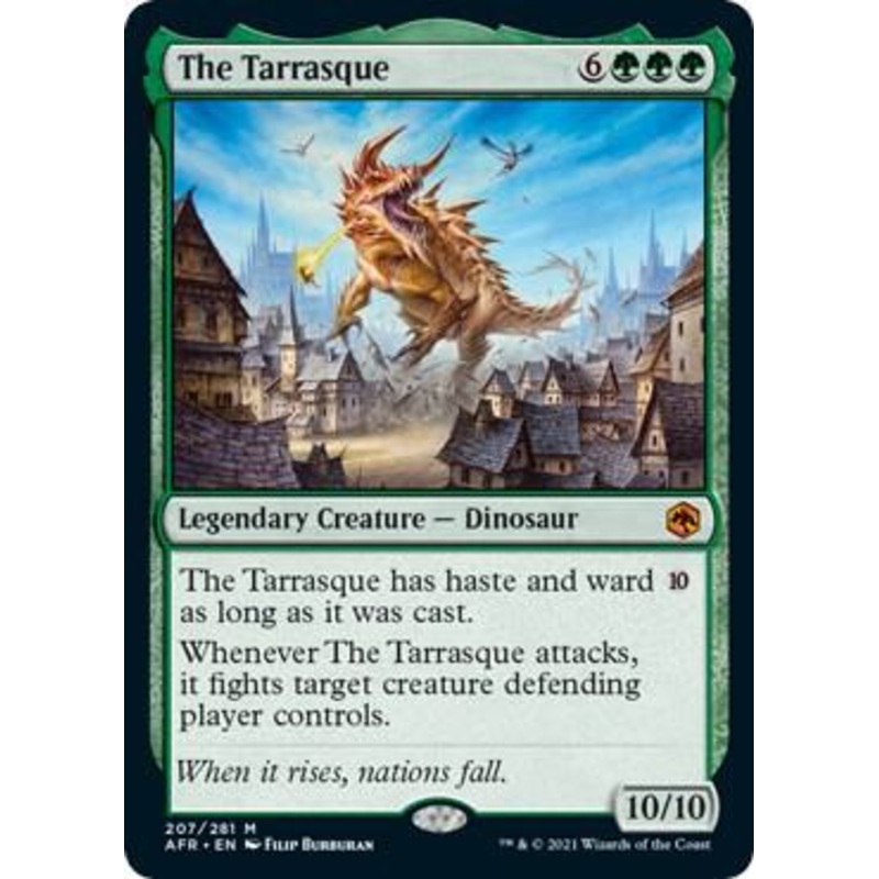 The Tarrasque has haste and ward 10 as long as it was cast.Whenever The Tarrasque attacks, it fights target creature defending player controls.Rarity:M#:207Card Type:Legendary Creature DinosaurP / T:10 / 10Flavor:When it rises, nations fall.Casting Cost: 6
