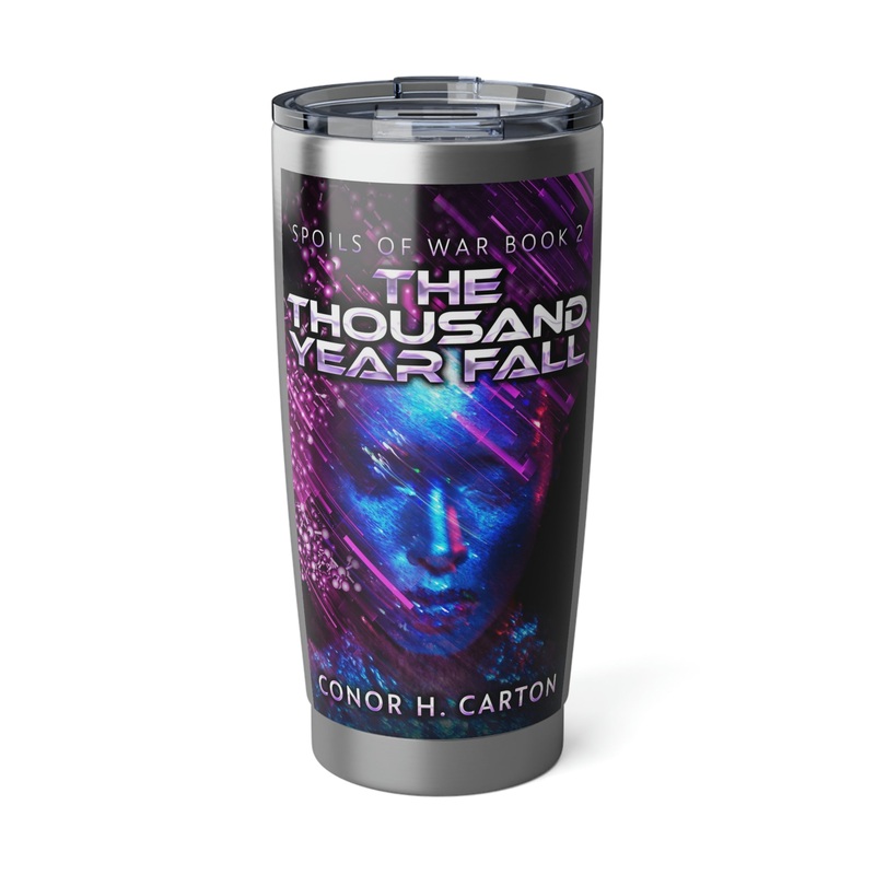 Minimize your plastic footprint with style. This tumbler fits perfectly into car cup holders, and the rubber gasket makes it spill-resistant on bumpier roads. The double-wall insulation makes sure drinks stay at the right temperature until the next pit stop. The cover art in this 20 oz tumbler is from Conor H. Carton’s book, The Thousand Year Fall.