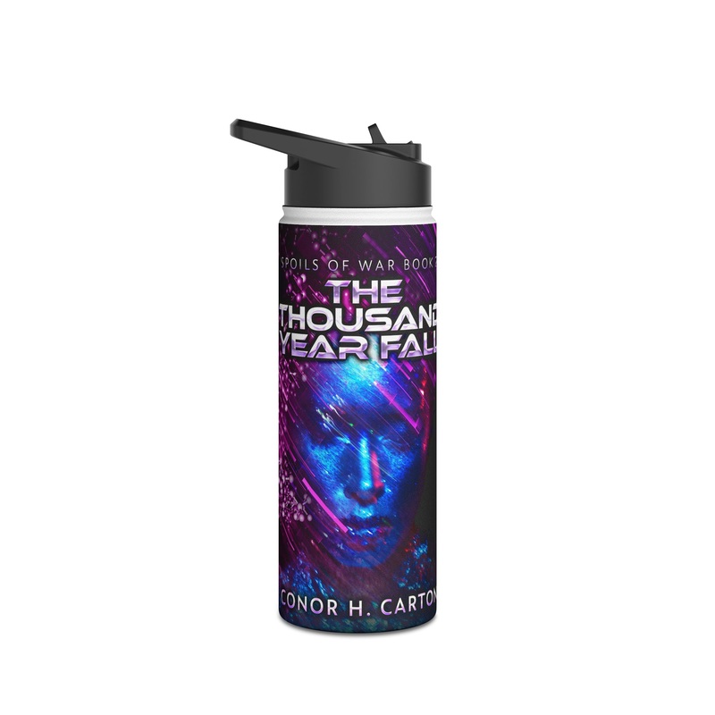 Quench your thirst in style with this 18oz stainless steel water bottle featuring a double-wall stainless steel build that keeps your drinks frosty for 24h and soothingly hot for 12h. This BPA-free, steel water bottle comes with a twist-on lid for easy sipping, making it excellent for daily use at work, at college, in the car, and beyond. The cover art in this water bottle is from Conor H. Carton’s book, The Thousand Year Fall.