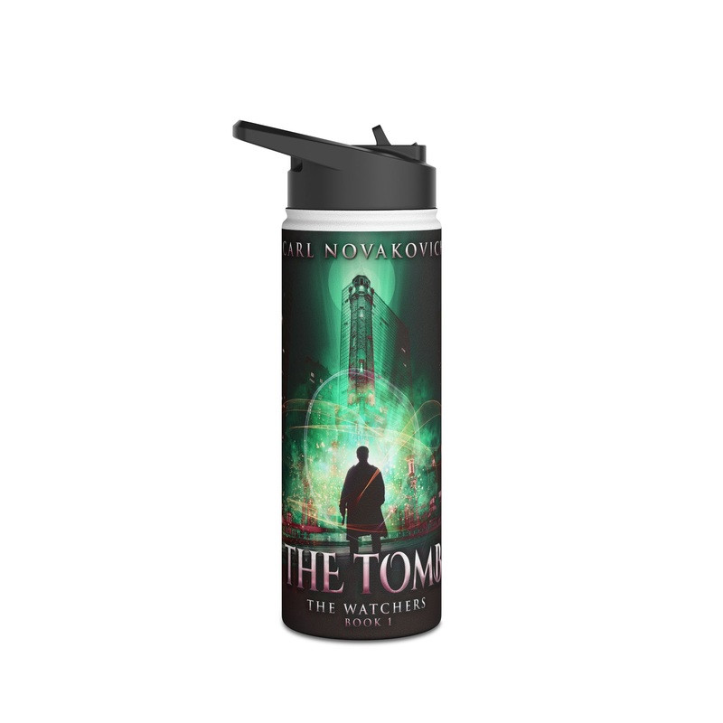 Quench your thirst in style with this 18oz stainless steel water bottle featuring a double-wall stainless steel build that keeps your drinks frosty for 24h and soothingly hot for 12h. This BPA-free, steel water bottle comes with a twist-on lid for easy sipping, making it excellent for daily use at work, at college, in the car, and beyond. The cover art in this water bottle is from Carl Novakovich’s book, The Tomb.