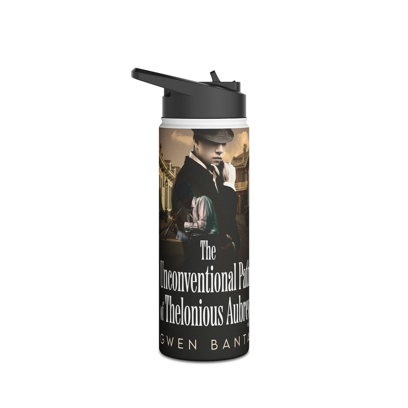 Quench your thirst in style with this 18oz stainless steel water bottle featuring a double-wall stainless steel build that keeps your drinks frosty for 24h and soothingly hot for 12h. This BPA-free, steel water bottle comes with a twist-on lid for easy sipping, making it excellent for daily use at work, at college, in the car, and beyond. The cover art in this water bottle is from Gwen Banta’s book, The Unconventional Path of Thelonious Aubrey.