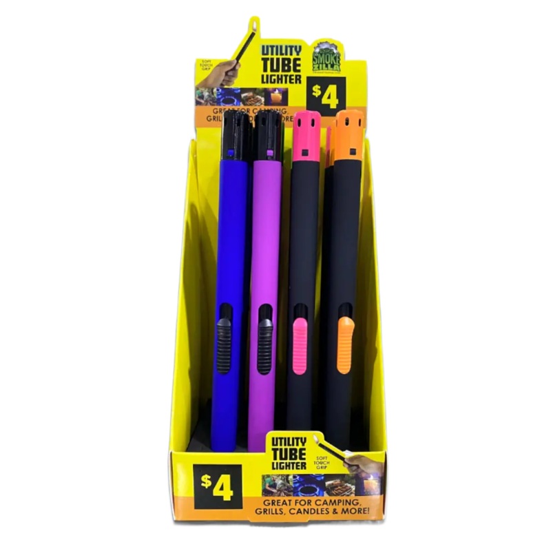 This thin tube lighter is great for camping, grills, candles, and more! It has a soft touch grip and it's refillable. Display is pre-priced at $4.00 per piece. UOM Pieces Dimensions INCH Weight LB UPC Each 1 8.2H x 1.2W x 1.2L .09 794080415570 Display 12 8