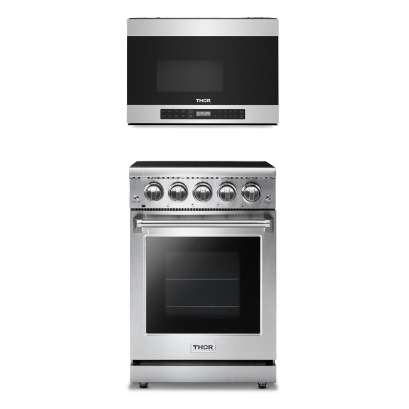 THOR Kitchen Package – 24″ Professional Electric Range, Over the Range Microwave, AP-HRE2401-2