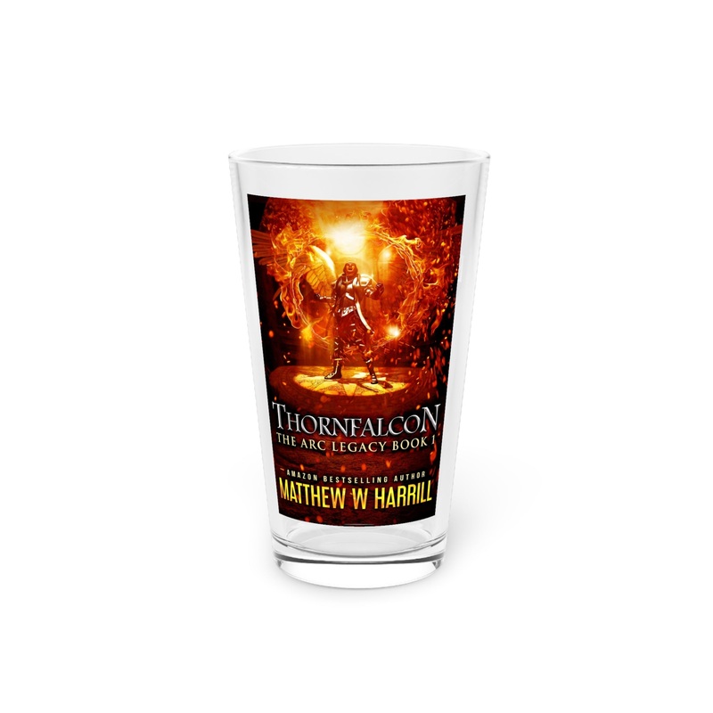 Nothing can replace a pint glass except for another pint glass. These long and transparent glasses are highly versatile, can make for a great housewarming gift, and are bound to be used in any household. The cover art on this pint glass is from Matthew W. Harrill’s book, Thornfalcon.