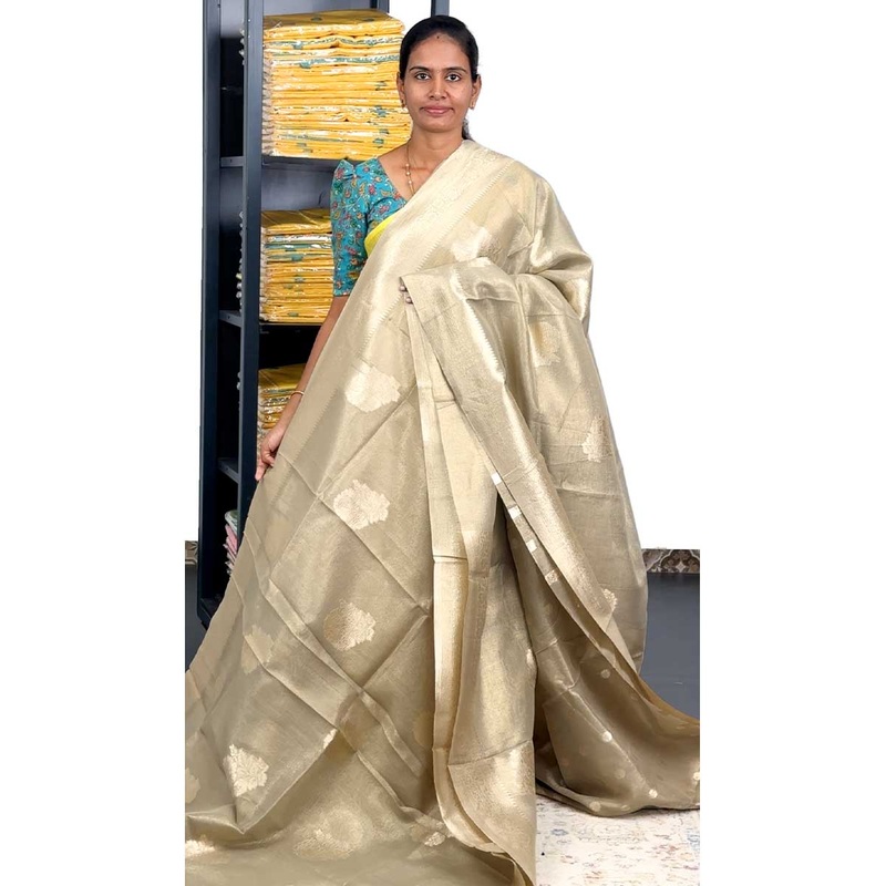 Experience grace with our beautifully craftedSarees, designed for those who love tradition with a touch of modern comfort.Length: 6.2-6.4 metersWidth: 44 47 inchesFabric: Tissue Crushed lightweight, smooth & easy to drapeBlouse: Running Blouse (Approx. 75