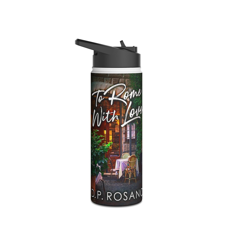Quench your thirst in style with this 18oz stainless steel water bottle featuring a double-wall stainless steel build that keeps your drinks frosty for 24h and soothingly hot for 12h. This BPA-free, steel water bottle comes with a twist-on lid for easy sipping, making it excellent for daily use at work, at college, in the car, and beyond. The cover art in this water bottle is from D.P. Rosano’s book, To Rome With Love.