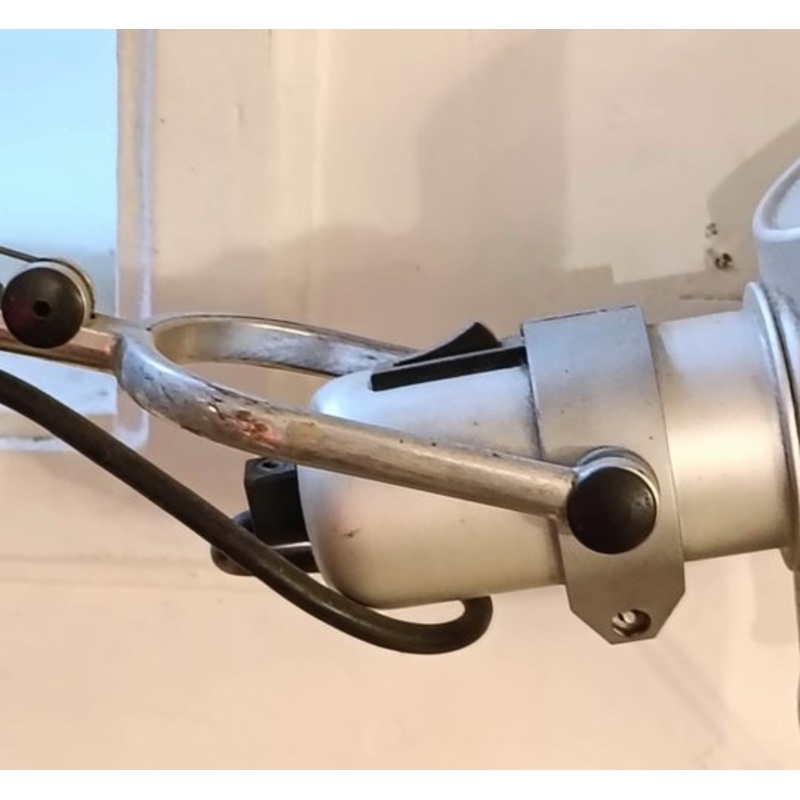 Designed by Giancarlo Fassina and Michele de Lucchi, Tolomeo Braccio is a timeless wall lamp from the Italian manufacturer Artemide. It features polished aluminium adjustable arms, an aluminium-coloured polycarbonate diffuser adjustable in various directions, and polished aluminium joints and hinges with balancing springs. Thanks to its flexible arms and adjustable diffuser, Tolomeo Braccio provides customisable direct lighting that can be directed and redirected as desired. The lamp has an engraved mark on the round wall base.