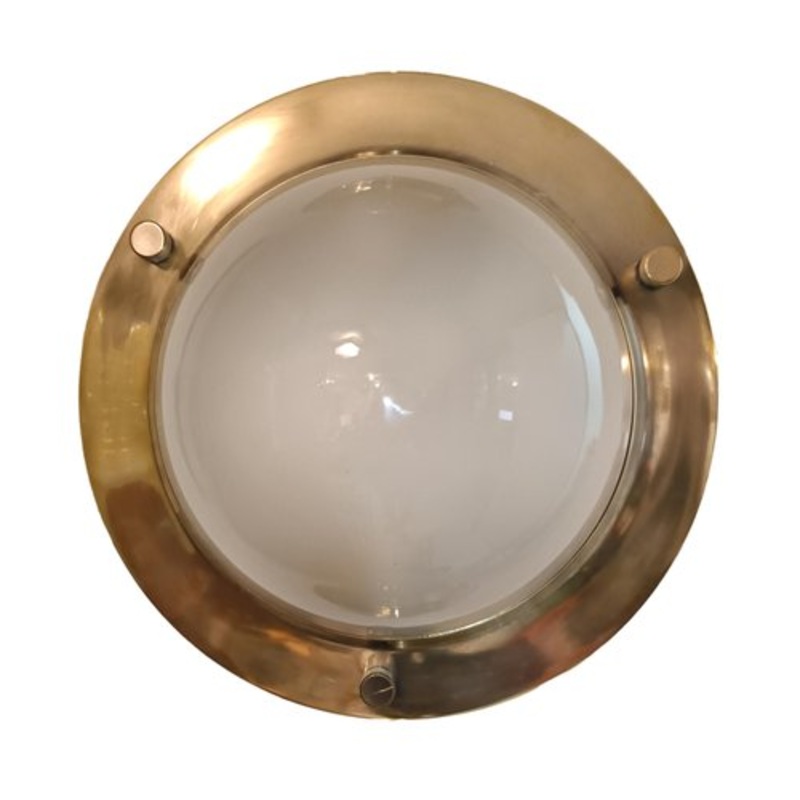 Wall lamp Model LSP6 Tommy by Luigi Caccia Dominioni for Azucena. Designed and produced in Italy, circa 1960s. Nautical-style wall light with a polished brass surround and a textured opaline glass diffuser.