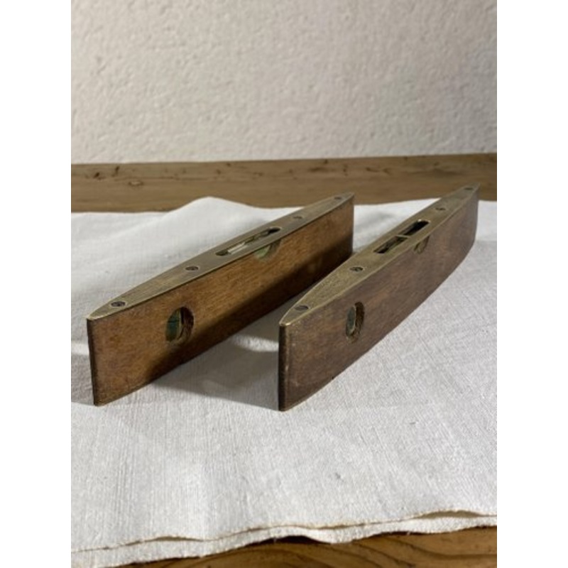 Model number 1626 (included in this lot) was manufactured around 1950 and stands out for its design in the shape of a torpedo or boat, combining a noble wood structure with brass details. The length of the level varies between 8 and 12 inches, depending on the version.