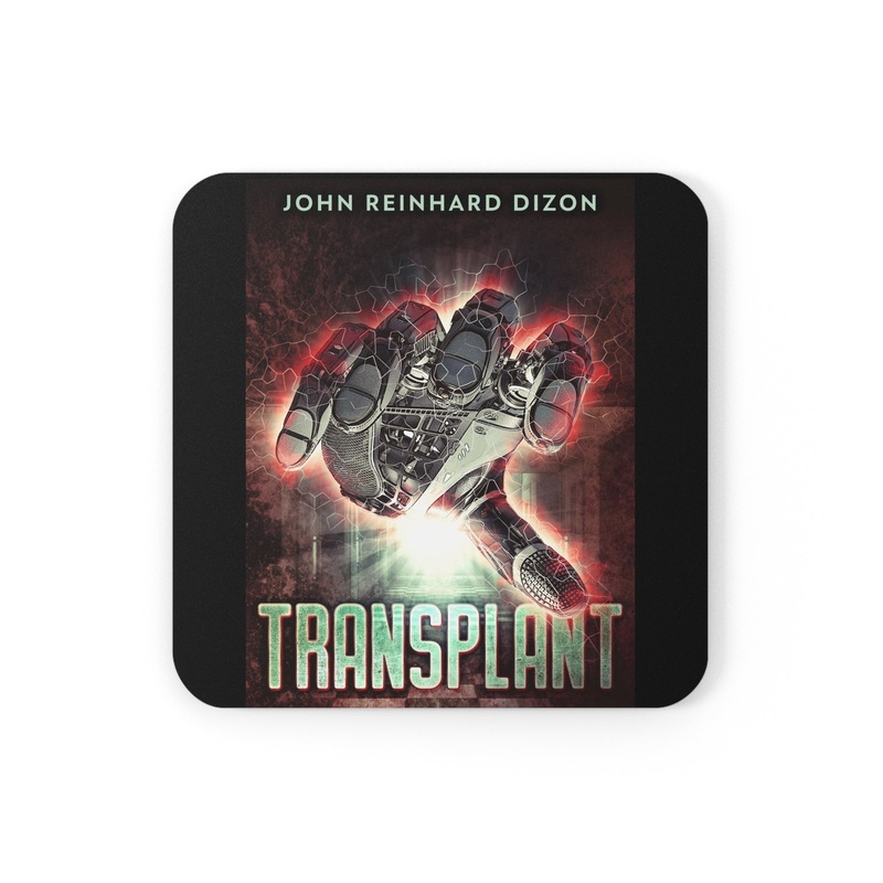 These coasters are made with a high-gloss top and feature a cork back to prevent sliding, and each order comes with a set of four coasters. The cover art in these coasters is from John Reinhard Dizon’s book, Transplant.