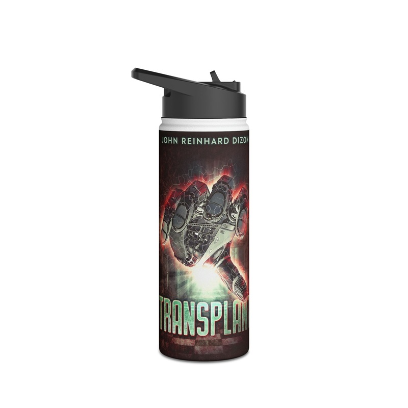 Quench your thirst in style with this 18oz stainless steel water bottle featuring a double-wall stainless steel build that keeps your drinks frosty for 24h and soothingly hot for 12h. This BPA-free, steel water bottle comes with a twist-on lid for easy sipping, making it excellent for daily use at work, at college, in the car, and beyond. The cover art in this water bottle is from John Reinhard Dizon’s book, Transplant.