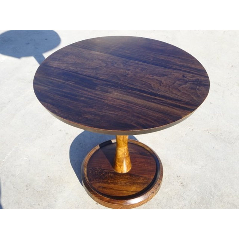 Central base; 40 cm disc, raised on 3 small ball feet, wide central shaft in solid wood.