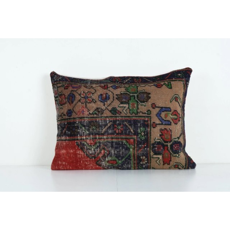 These beautiful 20″” x 26″” pillow covers were made from an authentic, vintage Turkish rug handwoven in the 1960s. Bright colors of wool adorn the front of the pillow and the cotton back has a hidden zipper enclosure. Makes a gorgeous addition to any couch, chair or bed.