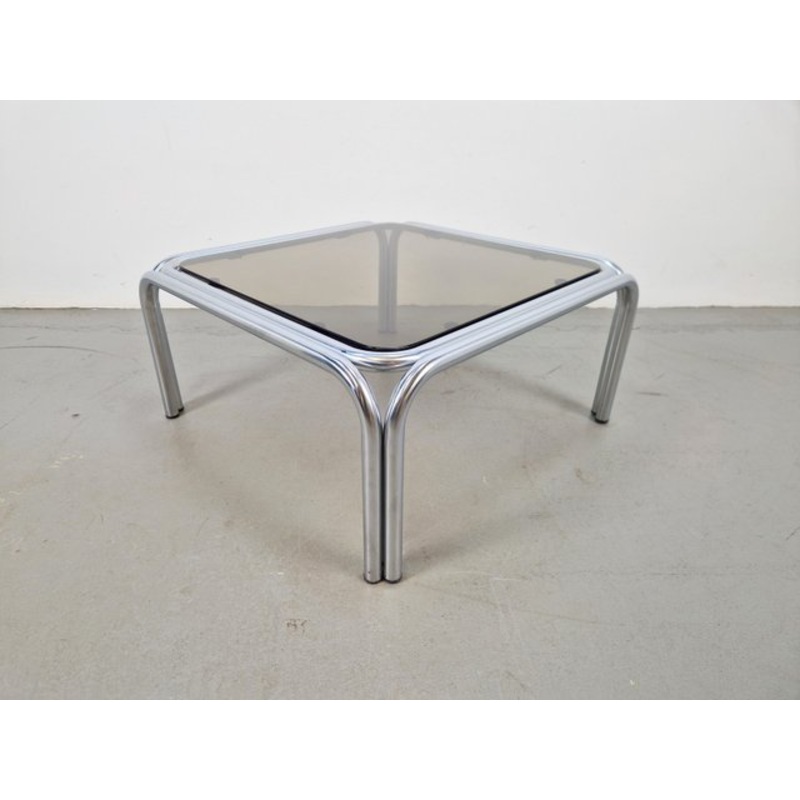 Material: Frame made of chromed tubes, top of smoked glass.
